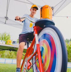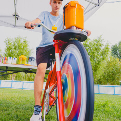 Bicicletele sunt dotate cu generatoare care convertesc energia mecanică în energie electrică. În timpul pedalării, energia generată va alimenta turnul de LED-uri.