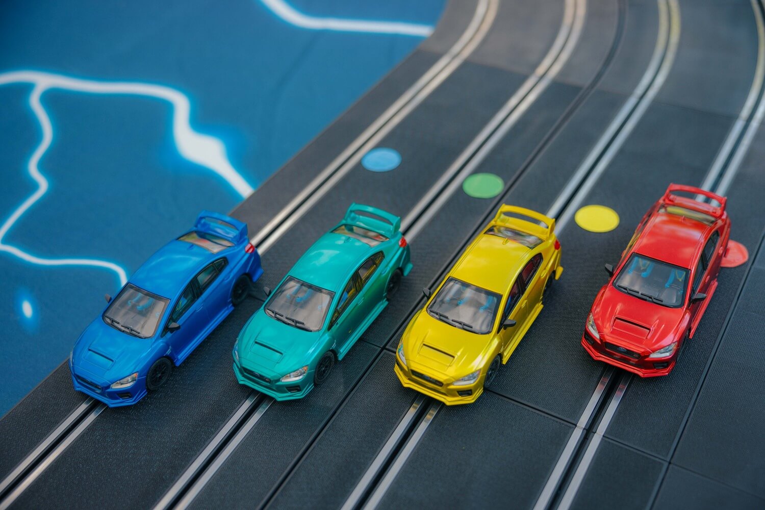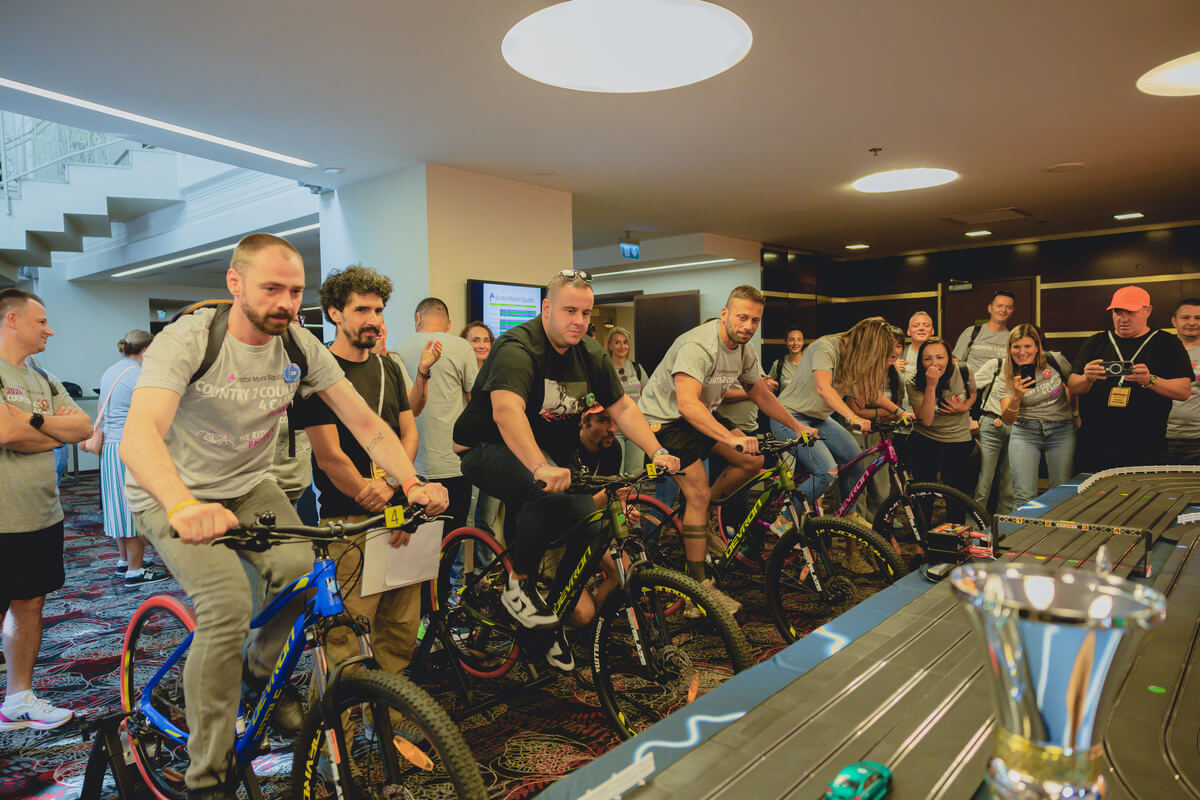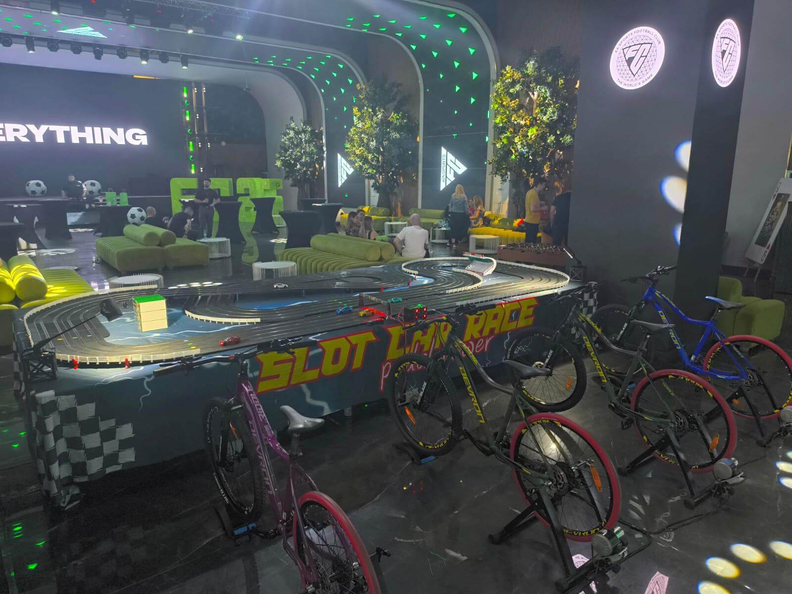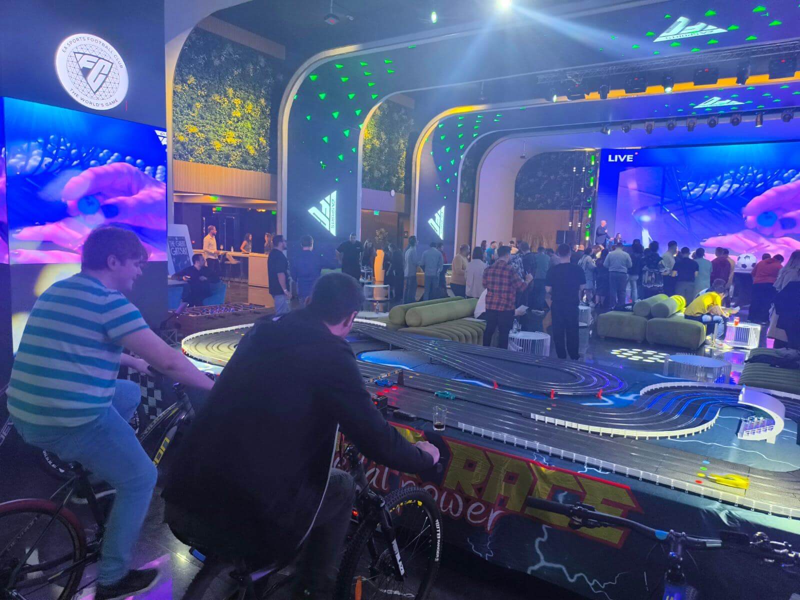 Imaginați-vă o competiție de curse palpitantă, unde viteza și controlul sunt în mâinile voastre – sau, mai bine spus, în picioarele voastre! Vă prezentăm o atracție revoluționară pentru evenimente: Pista de Slot Car cu patru benzi, alimentată de biciclete speciale, unde viteza de pedalare a participanților determină viteza mașinuțelor pe pista de curse. Această experiență unică combină activitatea fizică cu adrenalina curselor, oferind distracție maximă. Acest setup inovator este ideal pentru evenimente de toate tipurile, de la festivaluri și târguri la evenimente corporate, team-building-uri, team bonding, evenimenete wellbeing, evenimenete in centre comerciale…